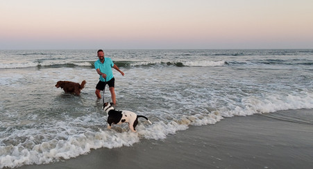 Cousin Henry, an avid beachgoer, came to HHI from Florida to meet Bell and show her how to get in the ocean. The two got along well and had a few romps in the water and runs on the beach.