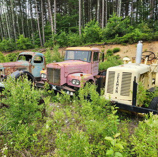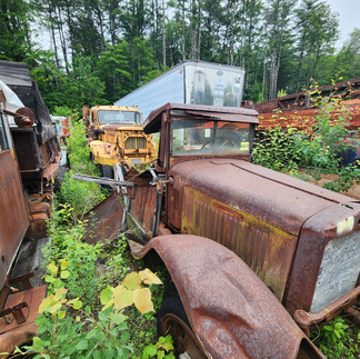When on a recent work assignment in Maine, we discover that there is a collection of trucks on the property. Neatly arrange and lined up are hundreds of antique vehicles on the large parcel of land.