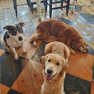 Mar Mar brought her brother, Torpedo, and his wife, Cosmo or J&J; still working on names. J&J brought their two golden retrievers Annie and Eddie. The men made some noise in the barn, the ladies drank wine, ate popcorn, and tended to doggies.