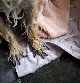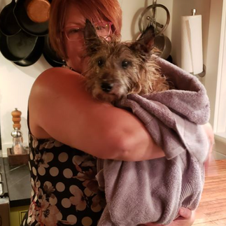 Over the course of a few months, I kept an eye on Fergus and could see that he was in need of help from me. Fortunately for Fergus, Rita was hospitalized for a month, and I could then get my hands on the little guy. I brought him to our house and gave him a bath. Took him to the vet to get his nails trimmed, and then got him to the groomer as soon as possible. Thank you to Beth Burke of Burke's Dirty Dawg Grooming.