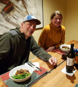 After a what I heard was a great ski day, we headed over to Whiskey's sister's for the night. We were treated to delicious food and a relaxed evening, despite the Bucs losing the playoff game (yes, Tom Brady fans here).
